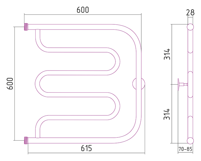 Полотенцесушитель водяной Стилье ТАНДЕМ 00011-6060 600х600