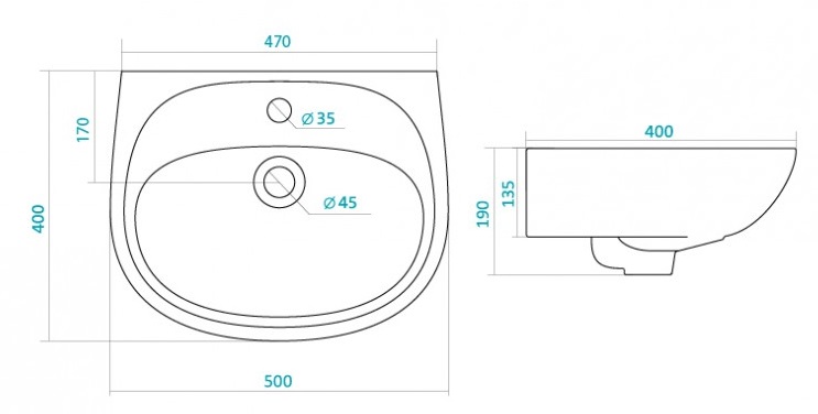 —Раковина Santek АНИМО 1.WH11.0.496 50 см.