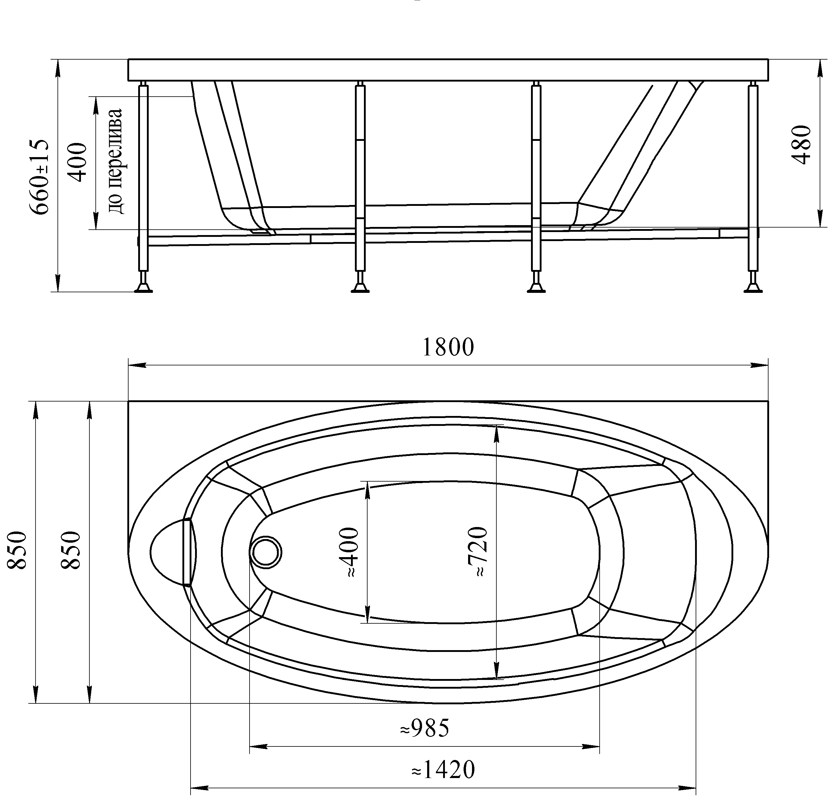 —Ванна акриловая овал. Radomir НЕАПОЛИ 185*85 см. с каркасом